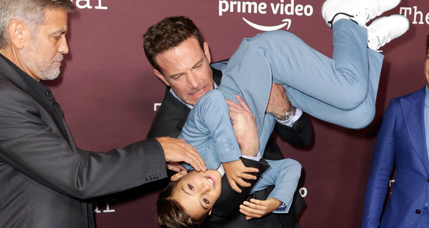 Daniel Ranieri gets flipped in the air by Ben Affleck at the LA premiere of their new movie The Tender Bar held at DGA Theater Complex on Sunday (October 3) in Los Angeles.