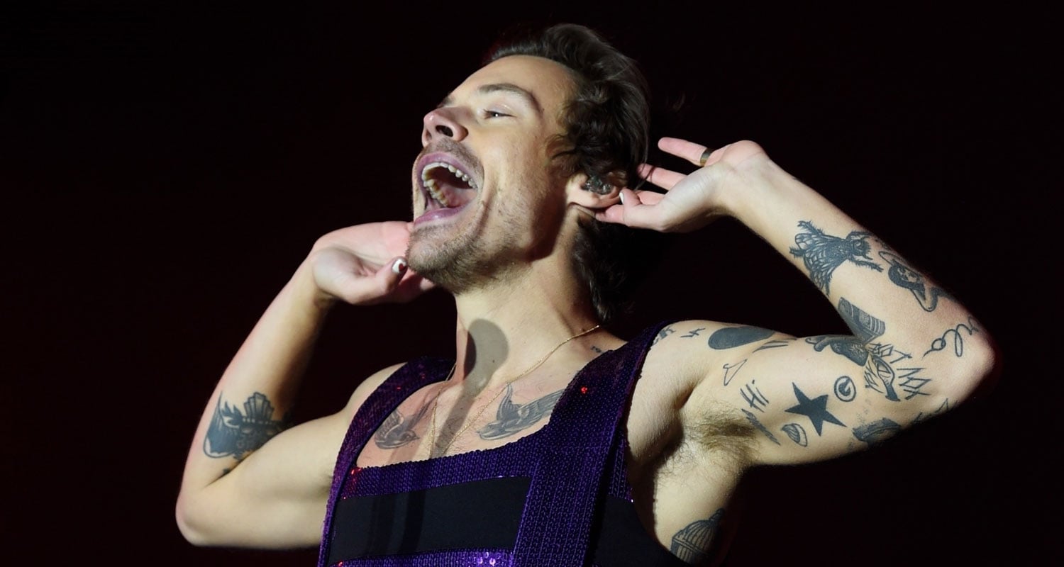 While on stage, Harry rocked a black and purple sequined jumpsuit as her performed songs off of his new album Harry’s House, which you can listen to here.