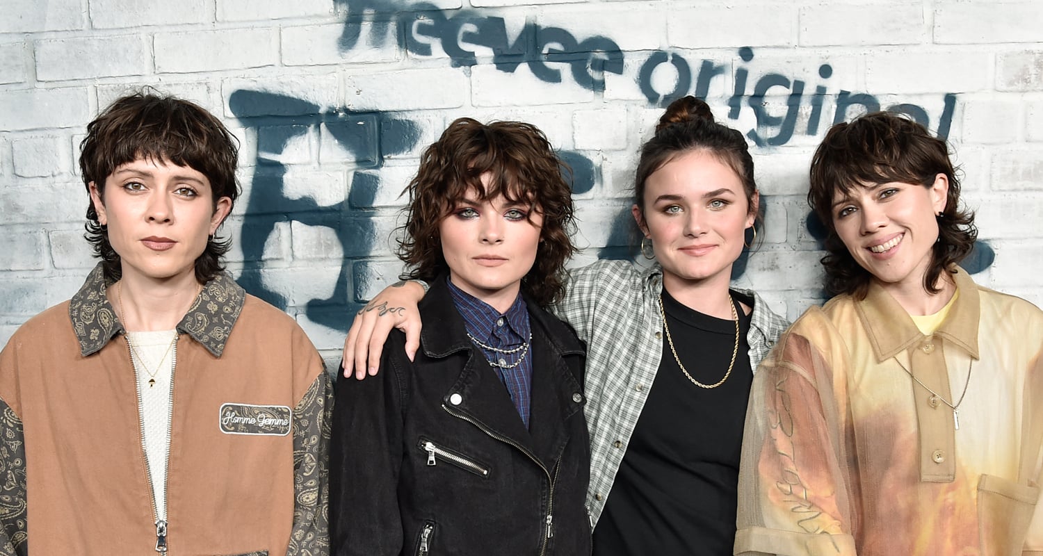 Railey & Seazynn Gilliland are sandwiched in by Tegan & Sara at the premiere of their new series High School…