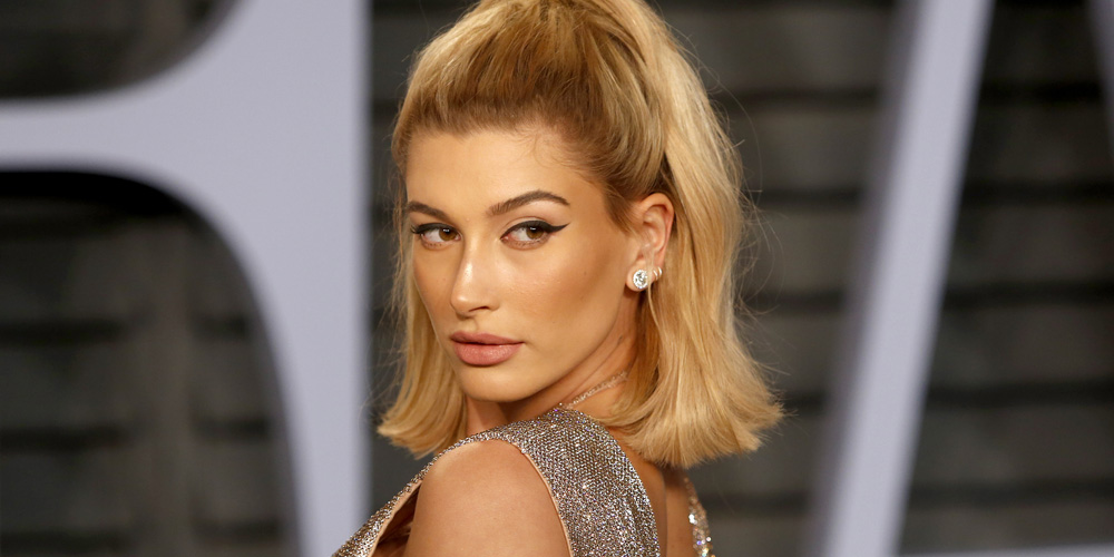 Hailey Baldwin shows off her pretty smile while arriving for the 2018 Vanity Fair Oscar Party at the Wallis Annenberg…