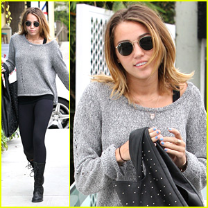 Miley Cyrus covers up from the chill after a pilates session in Los Angeles on Tuesday (April 24).