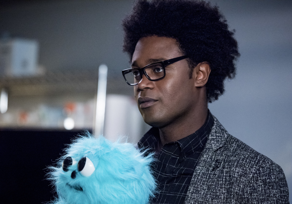 Curtis (Echo Kellum) carries a stuffed Beebo toy in this new still from tonight’s all-new Arrow.