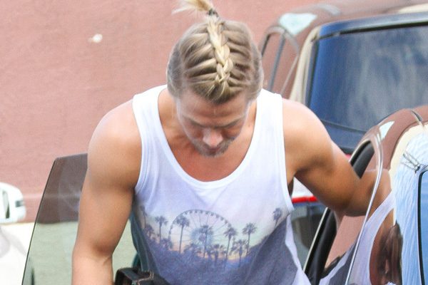Derek Hough shows off his new hairstyle while arriving at the dance studio in Los Angeles on Friday afternoon (September 11).