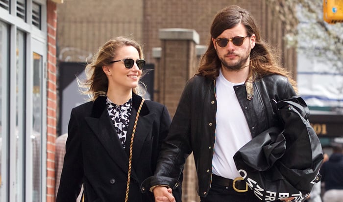 Dianna Agron flashes a smile at her fiance Winston Marshall as they take a walk together on Friday (April 1) in New York City.