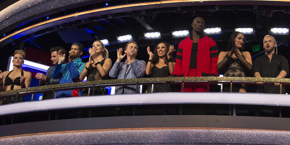 Drew Scott & Emma Slater; Frankie Muniz & Witney Carson; Jordan Fisher & Lindsay Arnold; Lindsey Stirling & Mark Ballas; Nick Lachey & Peta Murgatroyd; Nikki Bella & Artem Chigvintsev; Terrell Owens & Cheryl Burke; Vanessa Lachey & Maksim Chmerkovskiy; and Victoria Arlen & Val Chmerkovskiy.