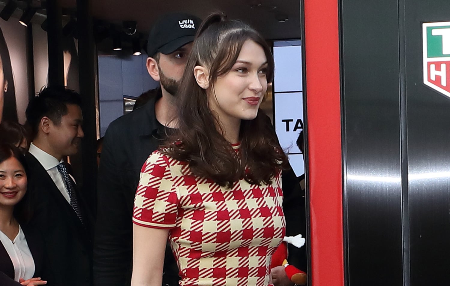The 21-year-old model stepped out in a gingham dress while celebrating the opening of TAG Heuer‘s new store on Monday (April 9) in Tokyo, Japan.