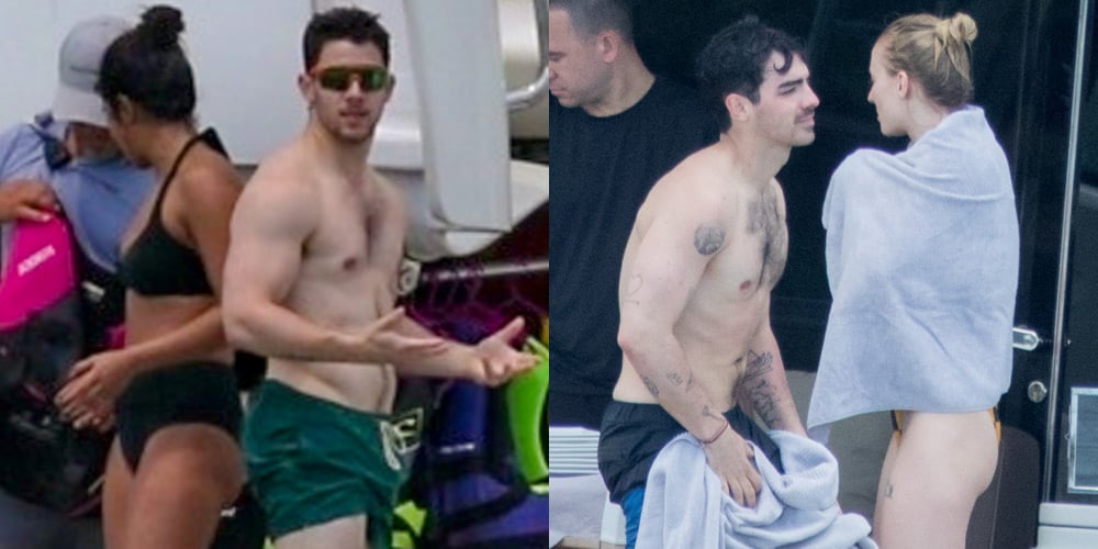 Nick, Joe, and Kevin Jonas, Priyanka Chopra, and Sophie Turner were all seen enjoying the warm weather while lounging on a private yacht on Monday afternoon (March 25) in Miami, Fla.