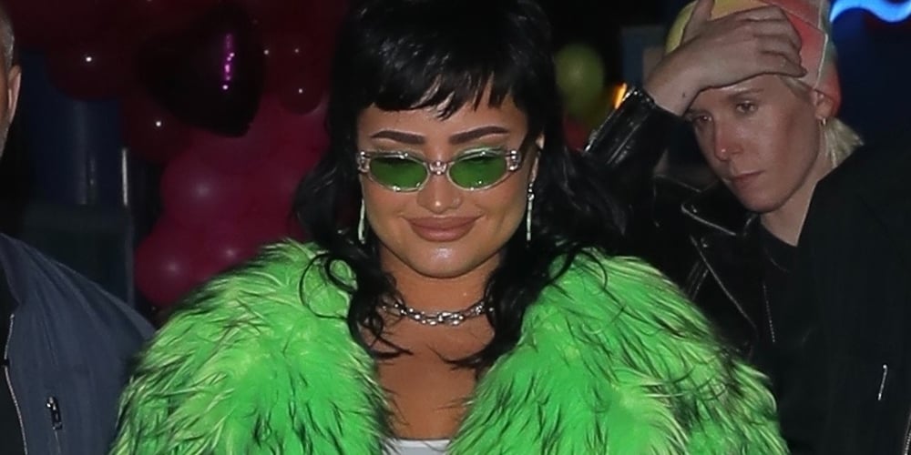 The 29-year-old “Dancing with the Devil” performer wore a bright green fur coat for their night out, pairing the look with a white tank top, black wide leg pants and studded leather platform shoes.