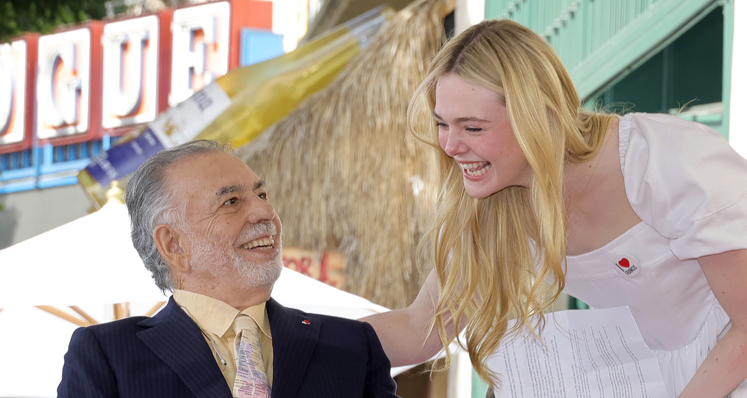 Elle Fanning hugs Francis Ford Coppola at his Hollywood Walk of Fame Star Ceremony on Monday (March 21) in Hollywood.