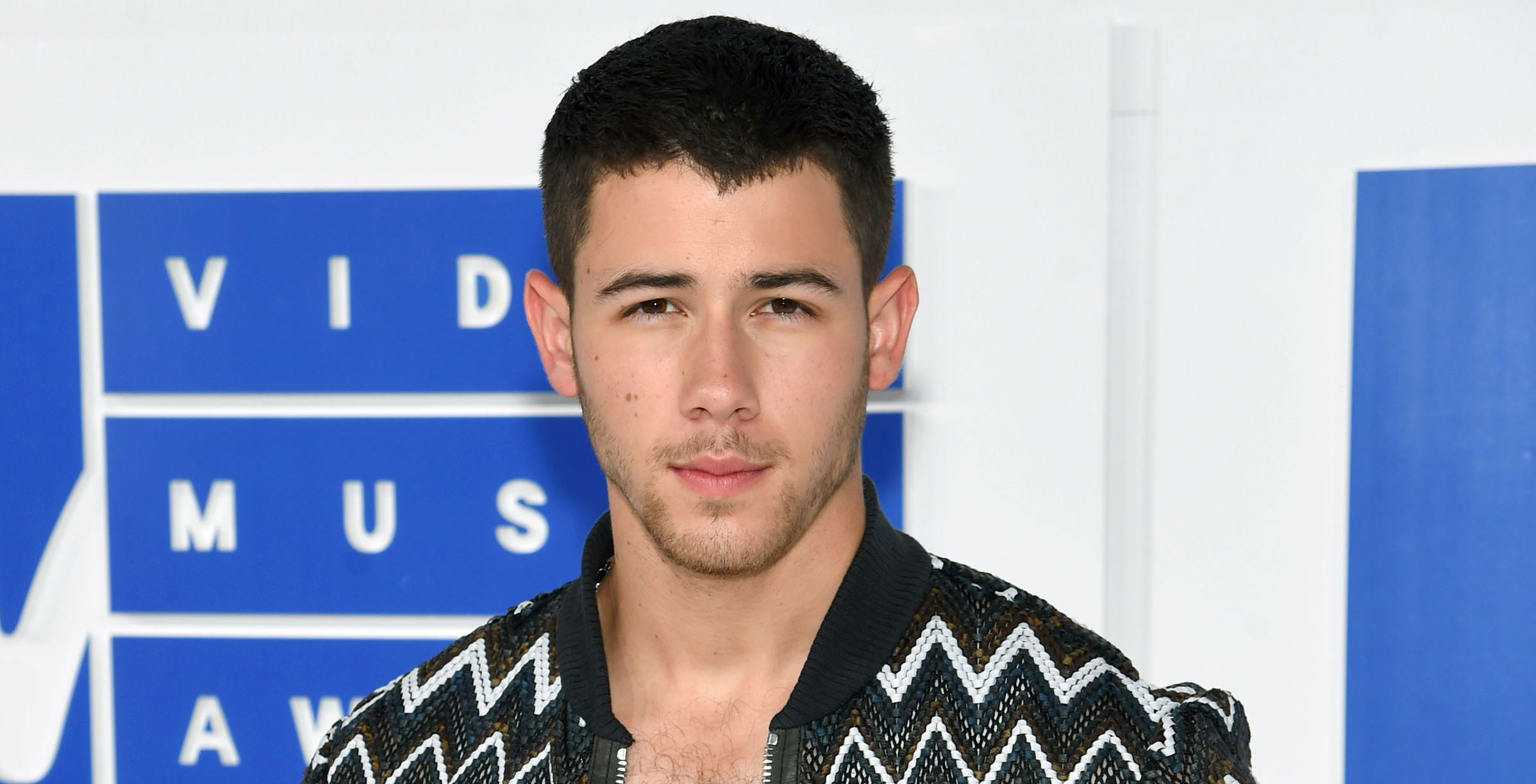 Nick Jonas makes a fashion statement while stepping out on the carpet at the 2016 MTV Video Music Awards on…