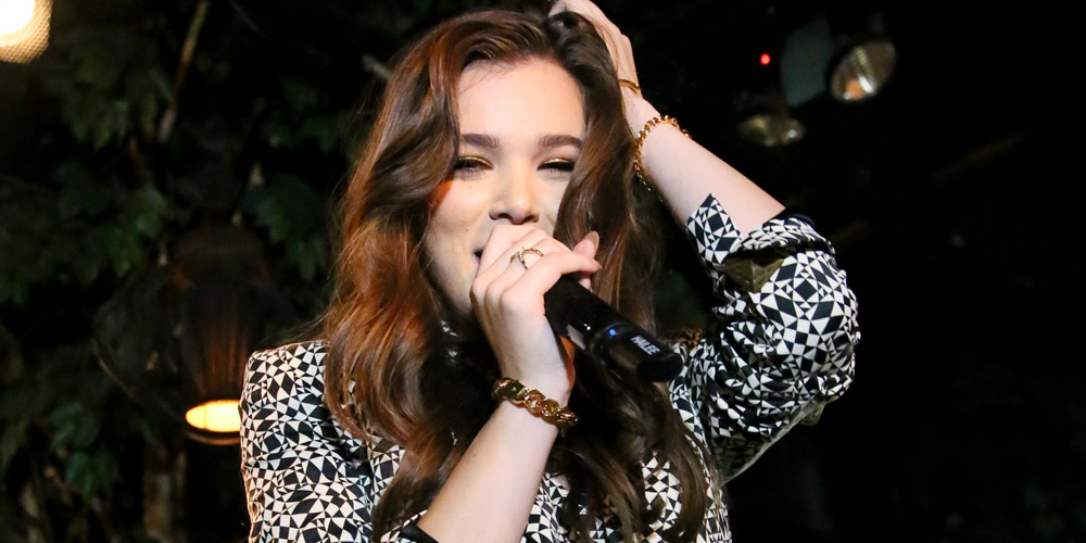 Hailee Steinfeld belts it out on stage while performing at the NYLON Rebel Fashion Party during New York Fashion Week…