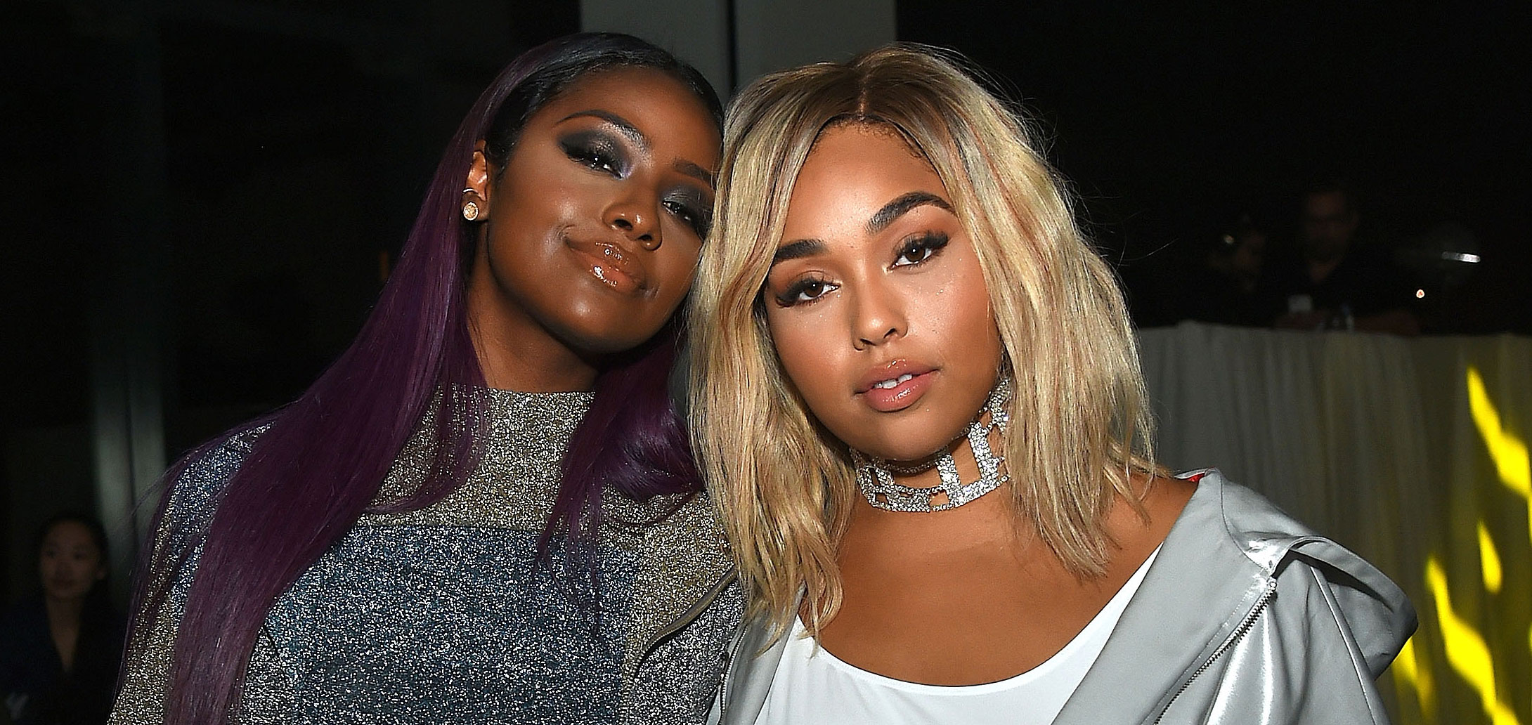 Jordyn Woods lets her silver jacket hang off her shoulder while attending the VFILES fashion show held during 2016 New…