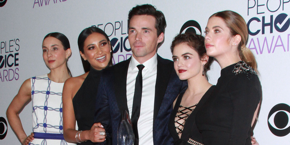 Ian Harding surrounds himself with his gorgeous Pretty Little Liars cast mates in the press room after winning at the…