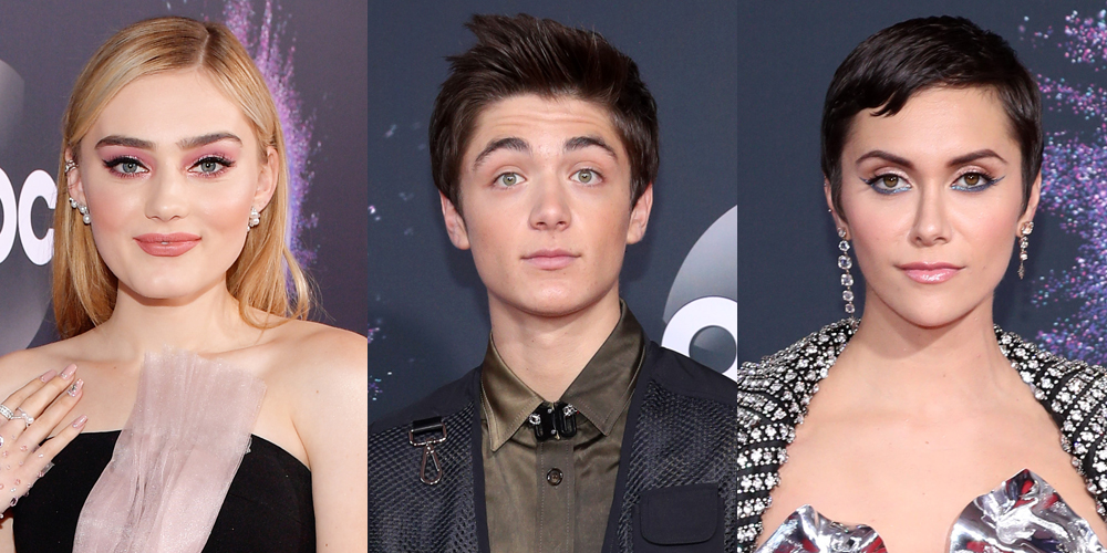 Meg Donnelly wears bejeweled gloves as she hits the red carpet at the 2019 American Music Awards held at Microsoft…