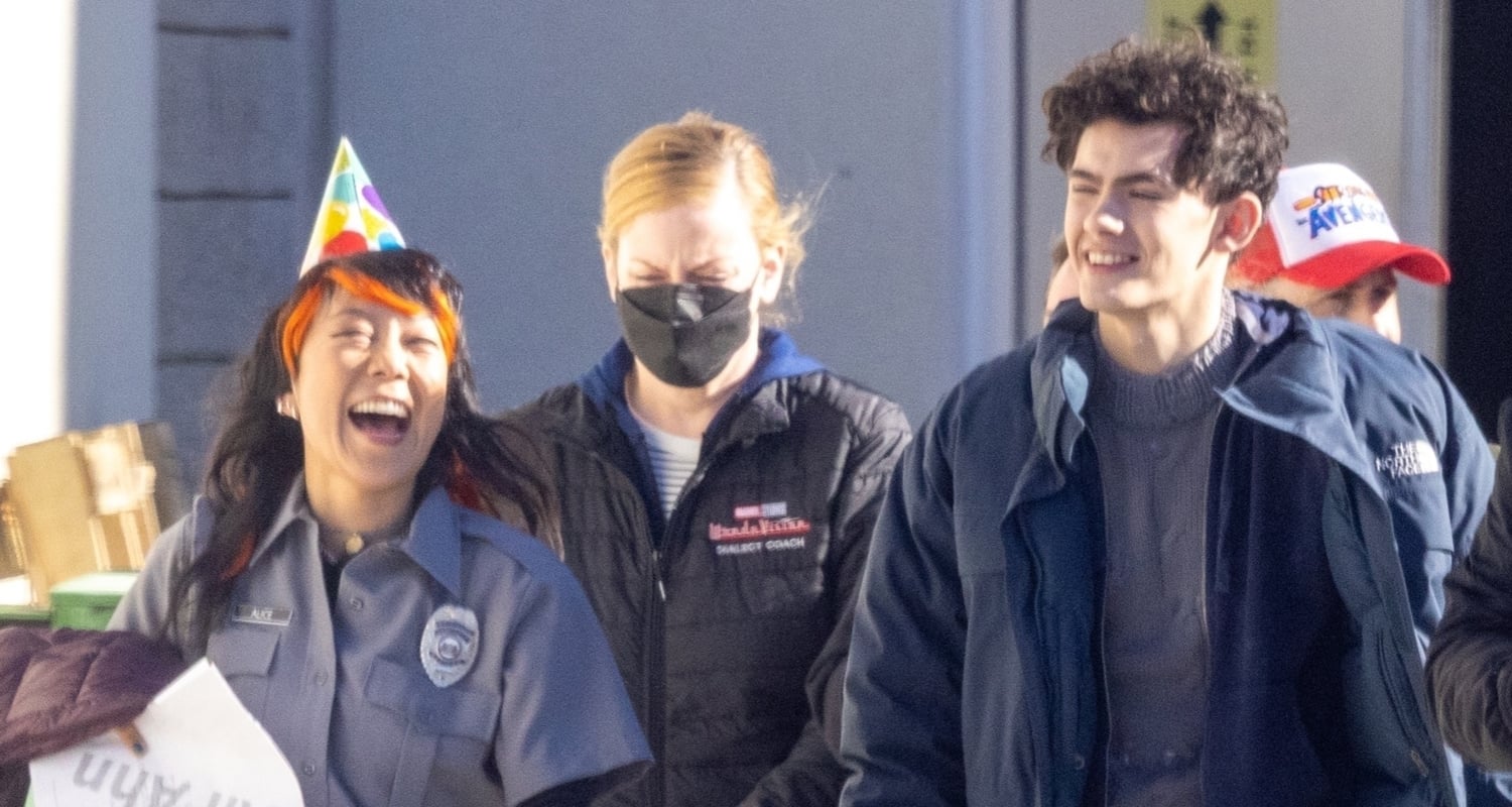 Joe Locke lets out a smile while leaving the set of his upcoming Marvel series Agatha: Coven of Chaos on…