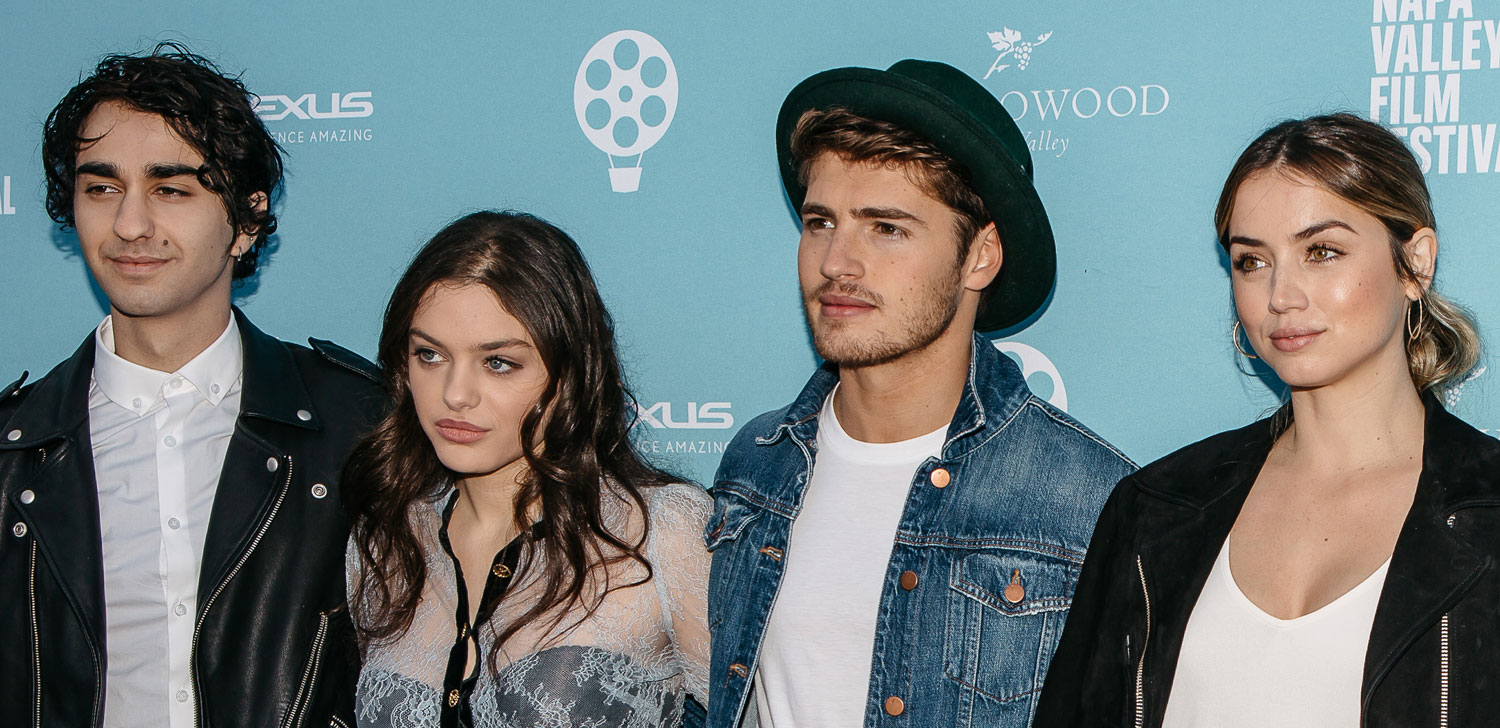 Gregg Sulkin joins Alex Wolff, Odeya Rush, and Ana de Armas for a group shot at the Napa Valley Film…