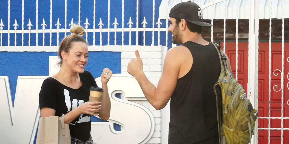 Peta Murgatroyd greets her celeb partner Nyle DiMarco with a smile at the dance studio on Thursday afternoon (April 21)…