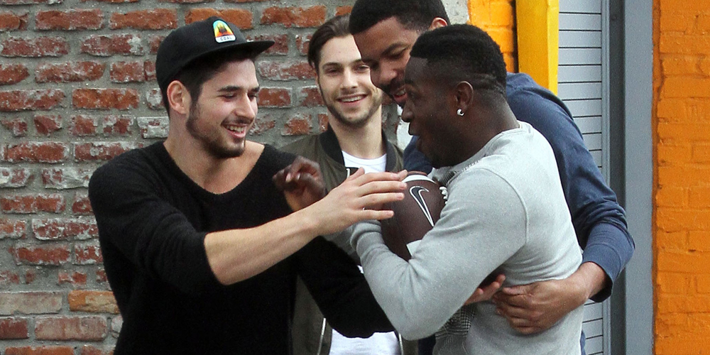 Antonio Brown plays a little football with the troupe dancers and Paige VanZant during some dance practice downtime in Los…