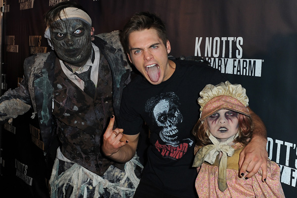 Tahj Mowry looks just a little worried about the monsters on the black carpet as he arrives at Knott’s Scary…