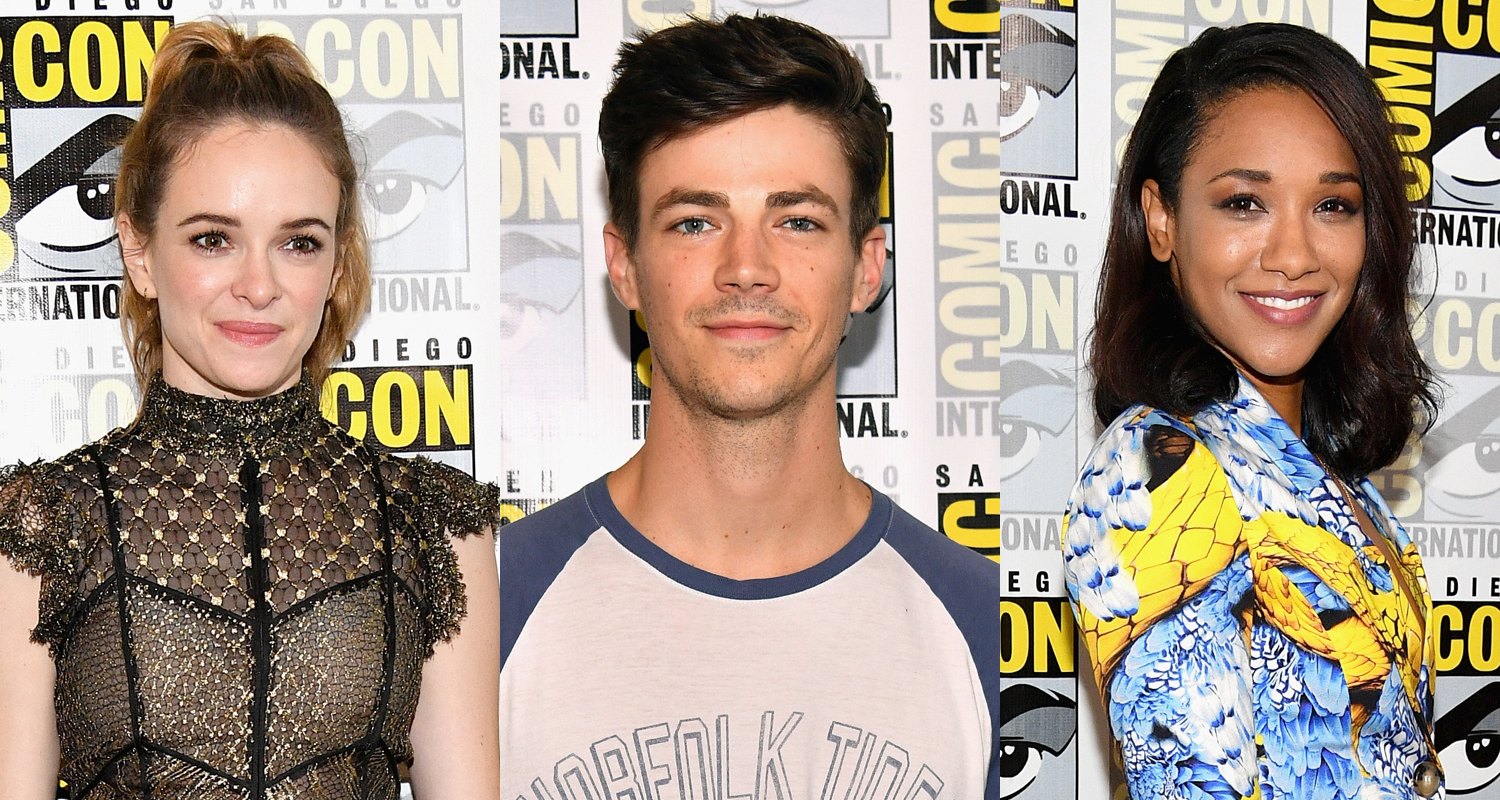 Grant Gustin is joined by co-stars Danielle Panabaker and Candice Patton while attending the 2017 Comic-Con to promote The Flash…
