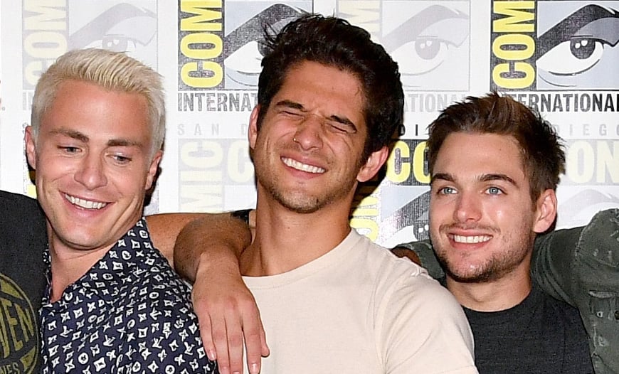 Colton Haynes poses for a photo with his former Teen Wolf co-stars Tyler Posey and Dylan Sprayberry at a photo…