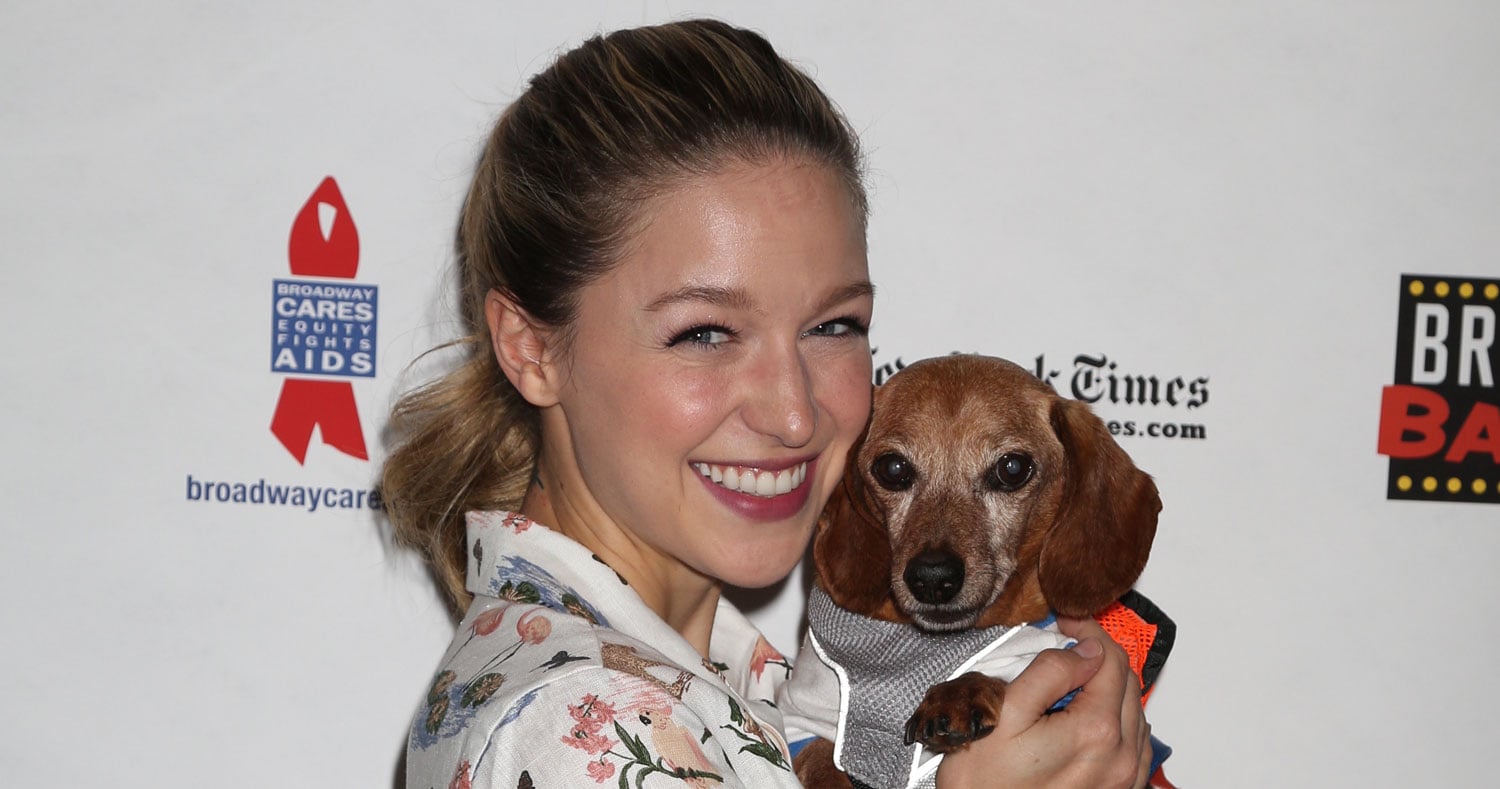 Melissa Benoist holds up an adorable puppy at the 2018 Broadway Barks adoption event on Saturday (July 14) in New…