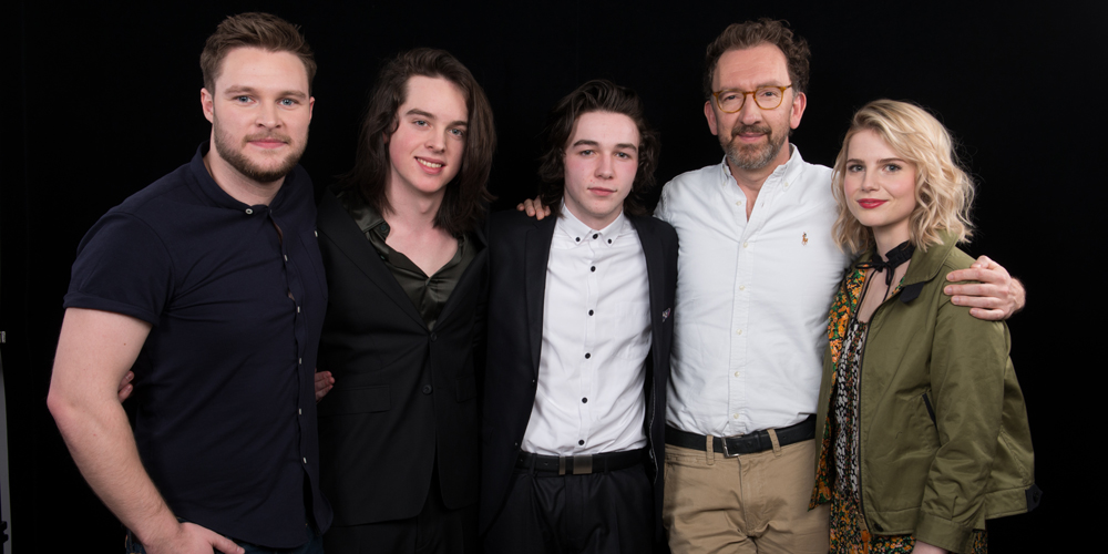 Jack Reynor poses with his Sing Street cast after their appearance at AOL Build in New York City earlier in…