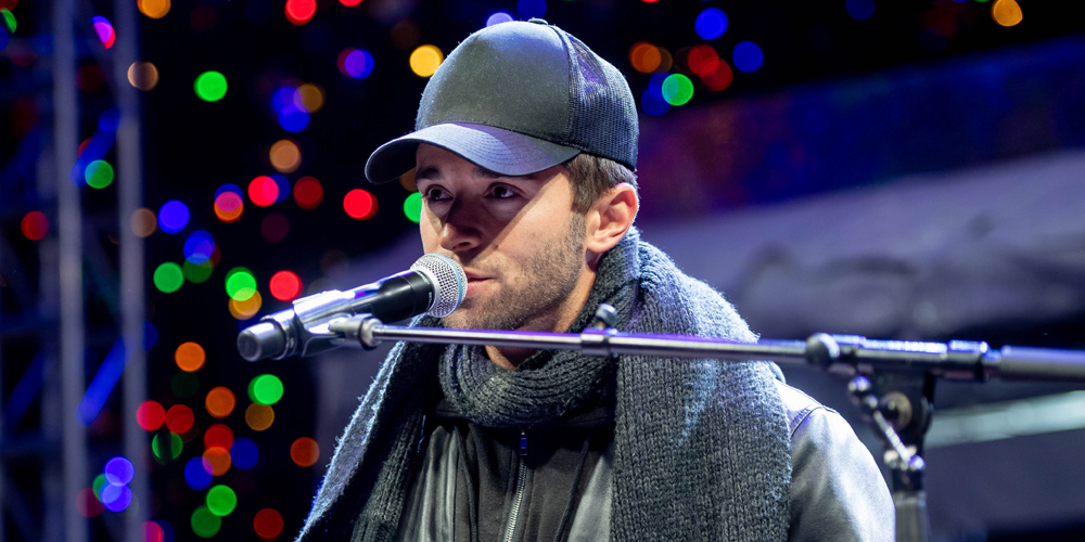 Jake Miller sits behind a keyboard while performing at the New York Stock Exchange’s Annual Christmas Tree Lighting event in…