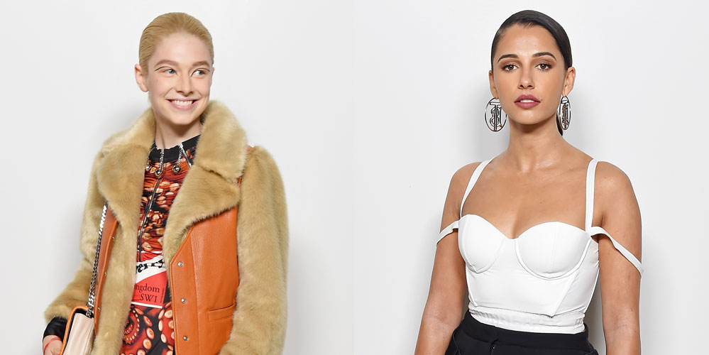 Hunter Schafer and Naomi Scott pose for photos while stepping out for the Burberry fashion show on Monday (September 16)…