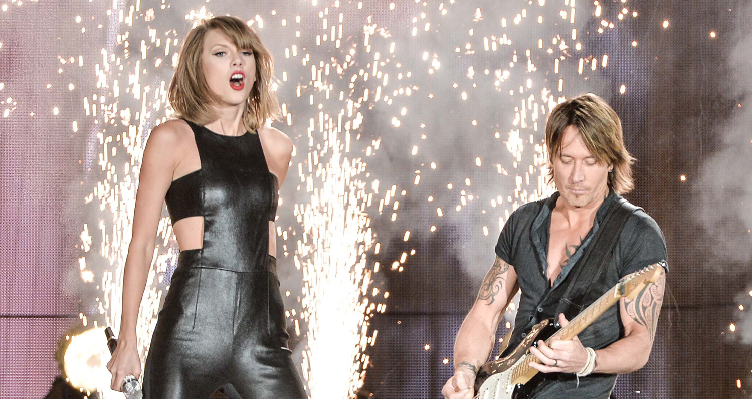 Taylor Swift is surrounded by a background of pyrotechnics while performing on stage during the latest stop on The 1989…