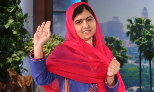 Malala Yousafzai waves to the crowd as she arrives for her appearance on The Ellen DeGeneres Show airing on Wednesday…