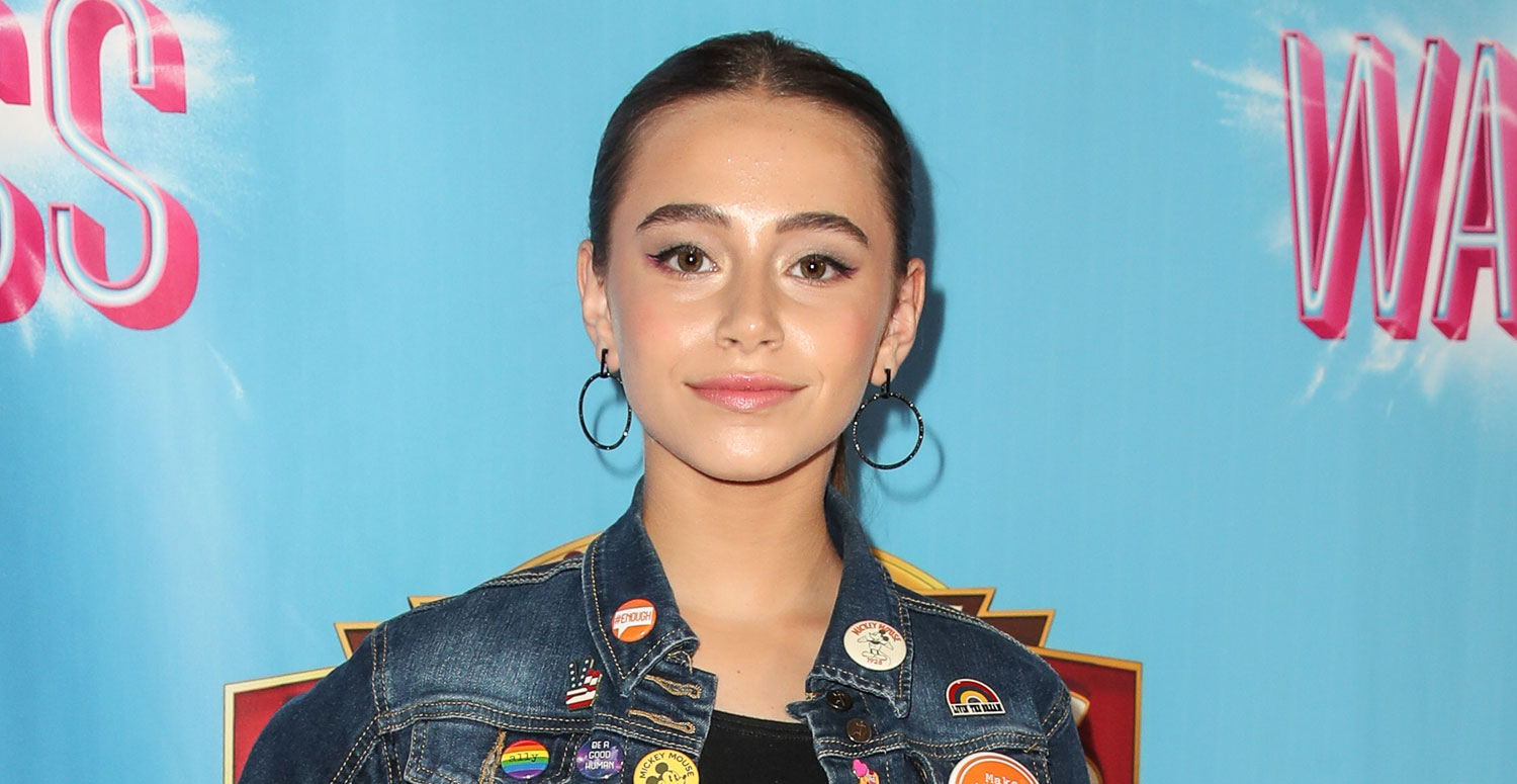 Sky Katz dazzles in a pink skirt and jean jacket while attending the opening night of Waitress at the Hollywood…
