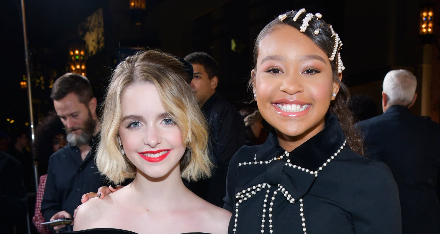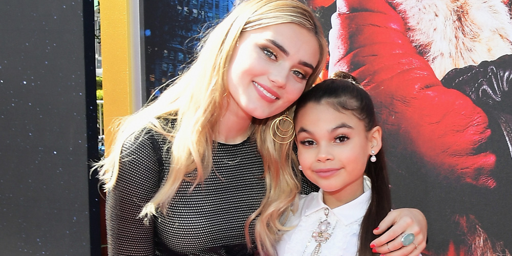 Meg Donnelly poses with Ariana Greenblatt while arriving at the premiere for The Christmas Chronicles on Sunday afternoon (November 18)…