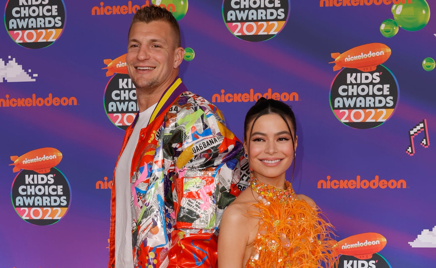 Miranda Cosgrove matches the orange carpet in her orange dress while arriving for the 2022 Nickelodeon Kids’ Choice Awards on…