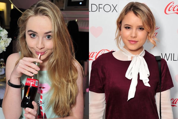 Taylor Spreitler and Sabrina Carpenter pose on the step and repeat at the WILDFOX Loves Coca-Cola Capsule Collection launch party…