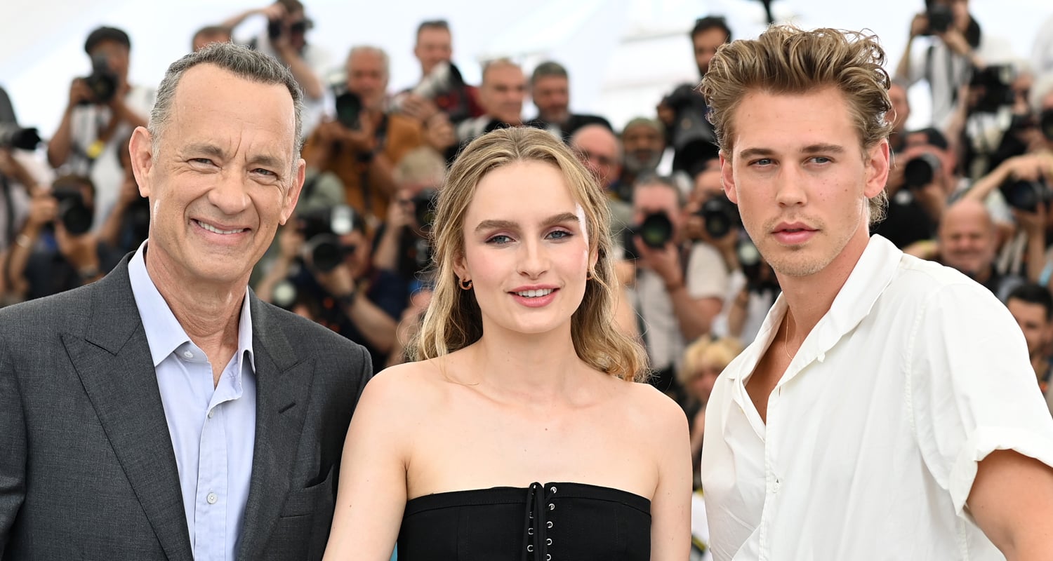 Austin Butler, Olivia DeJonge and Tom Hanks get in a group picture at the Elvis photo call held during the…