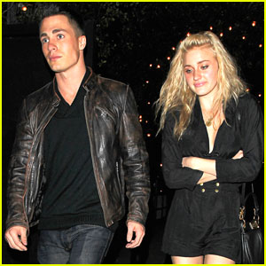 AJ Michalka and Colton Haynes head out of Bagatelle restaurant in Los Angeles on Friday night (November 2).
