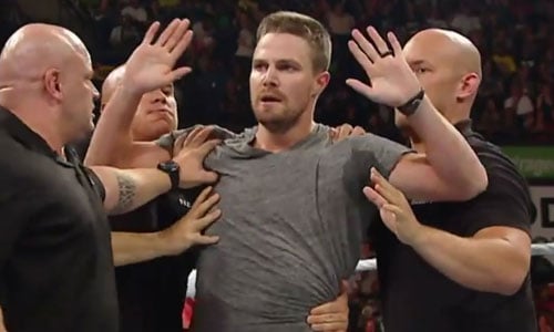 Click inside to see the rest of Stephen Amell‘s RAW appearance…