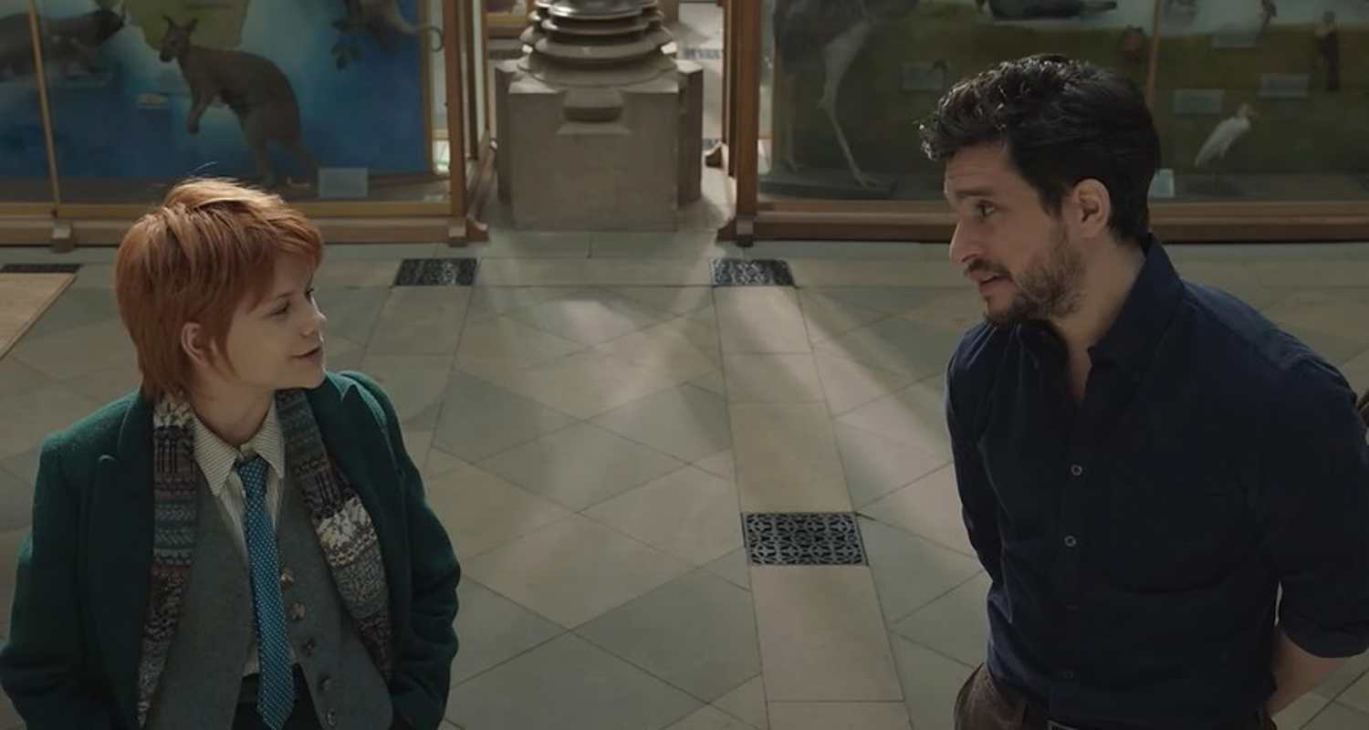 In this scene, “Small Talk,” we see Sprite (Lia McHugh) confronting Dane (Kit Harington) in the museum about his interactions with Sersi.