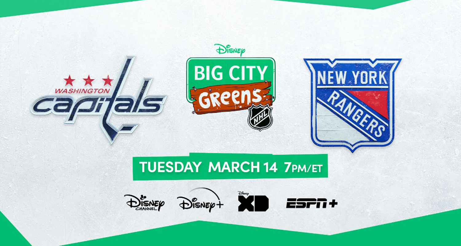The NHL Big City Greens Classic telecast will take place on March 14th at 7pm ET/PT. The live, animated telecast will air on ESPN+, Disney Channel, Disney XD and Disney+, while the main telecast will be available on ESPN and ESPN+.