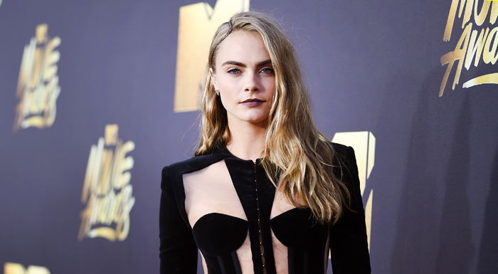 Cara Delevingne suits up on the red carpet at the 2016 MTV Movie Awards held at Warner Bros. Studios on…