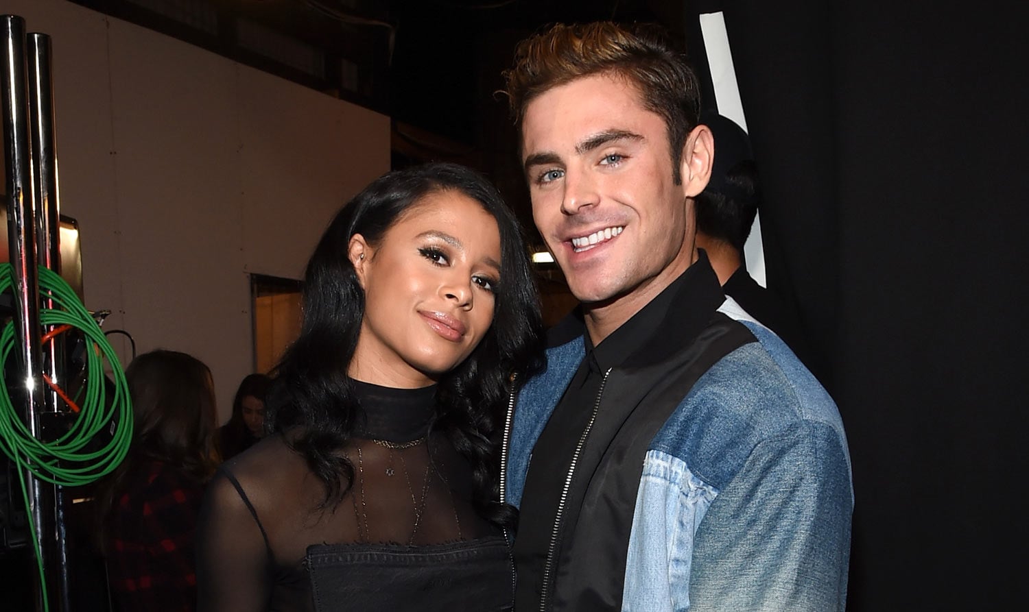 Zac Efron poses for a photo with his girlfriend Sami Miro while backstage at the 2016 MTV Movie Awards held…