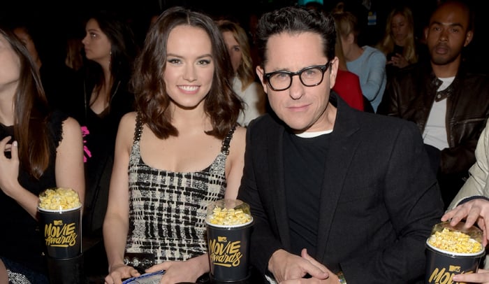 Daisy Ridley snaps a photo with The Force Awakens director J.J. Abrams at the 2016 MTV Movie Awards held at…