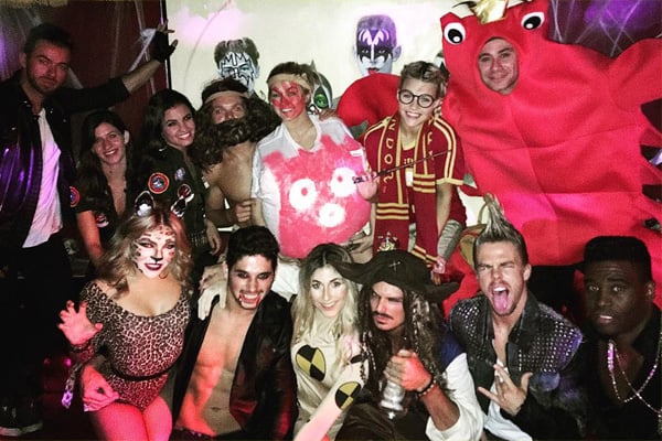 The cast of Dancing With The Stars sandwiches in one lucky fan during the DWTS Dance Lab held at The…