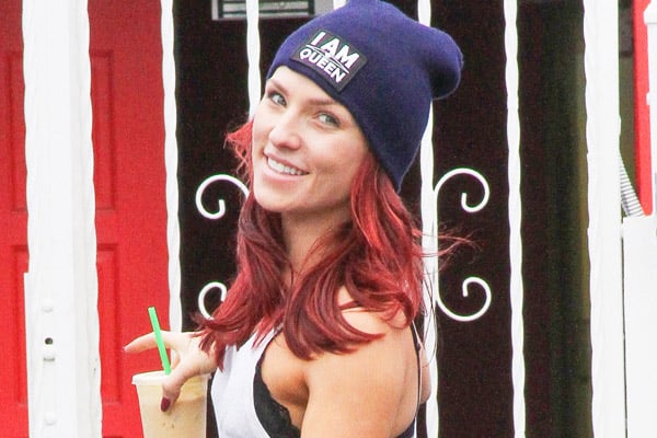 Sharna Burgess wears a cute ‘I Am Queen’ beanie while arriving at the dance studio in Los Angeles on Friday…