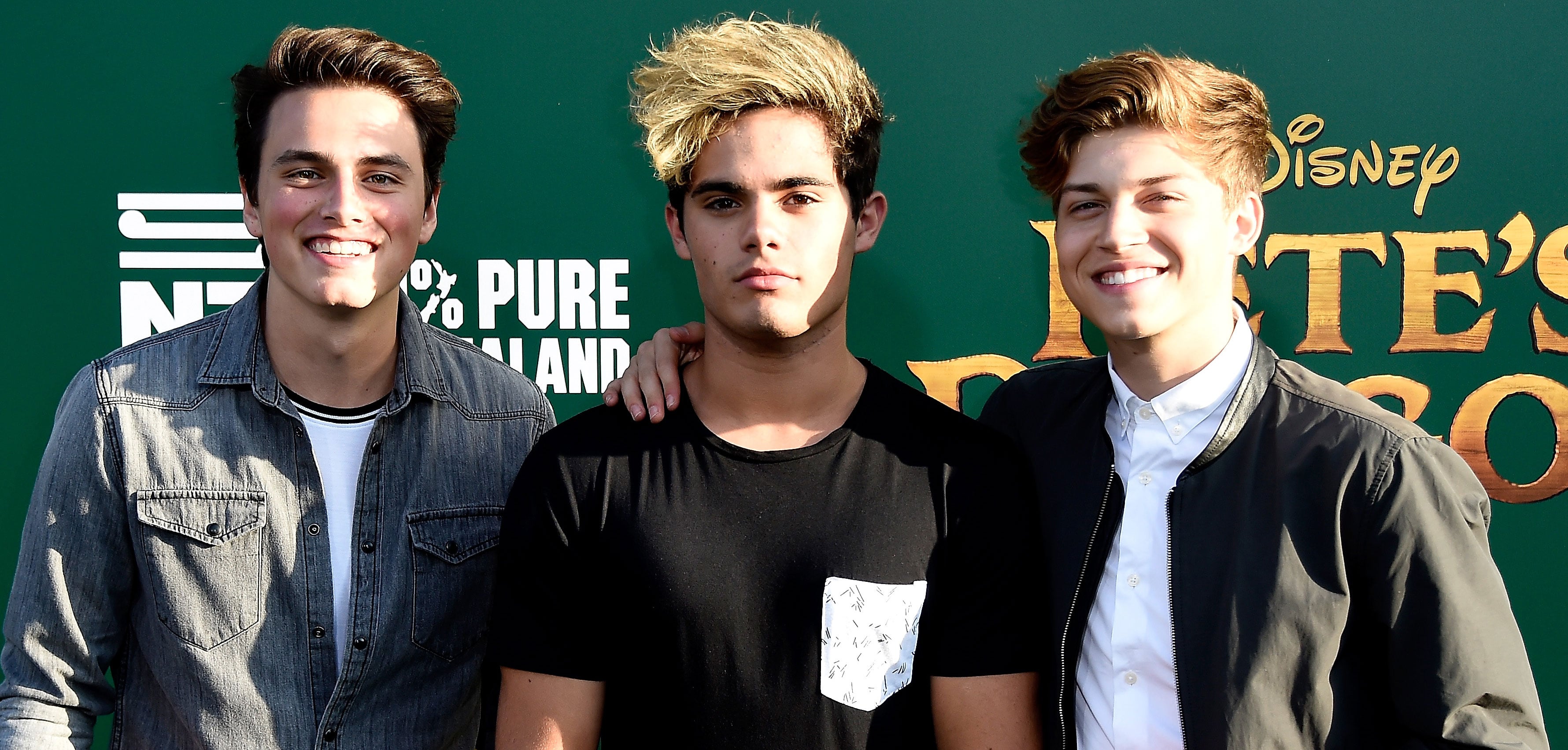 Liam Attridge, Emery Kelly, and Ricky Garcia of Forever In Your Mind get together for a group photo at the…
