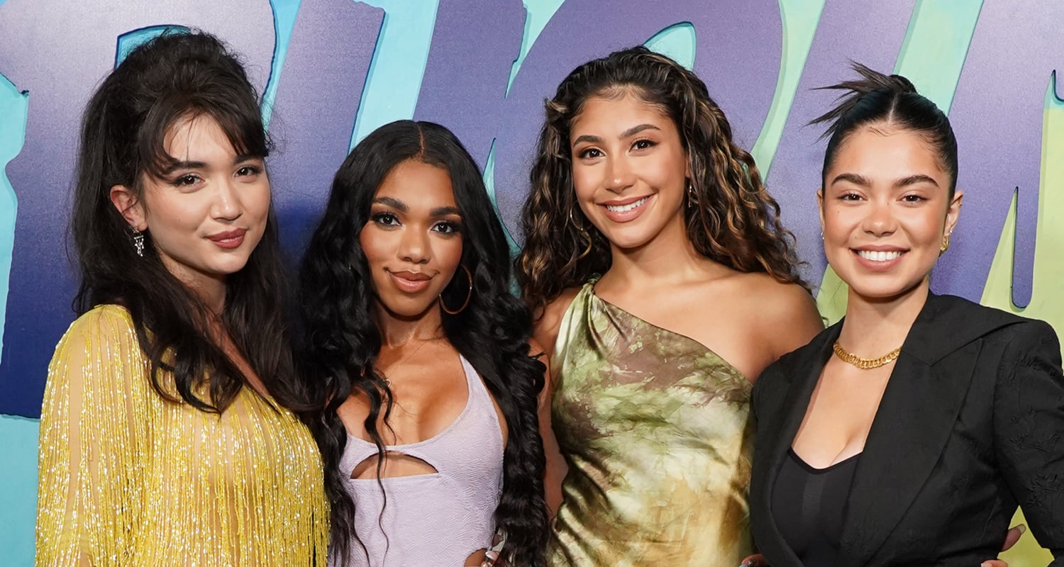 Rowan Blanchard, Teala Dunn, Isabella Ferreira and Auli’i Cravalho snap a cute group photo together while attending the premiere of…